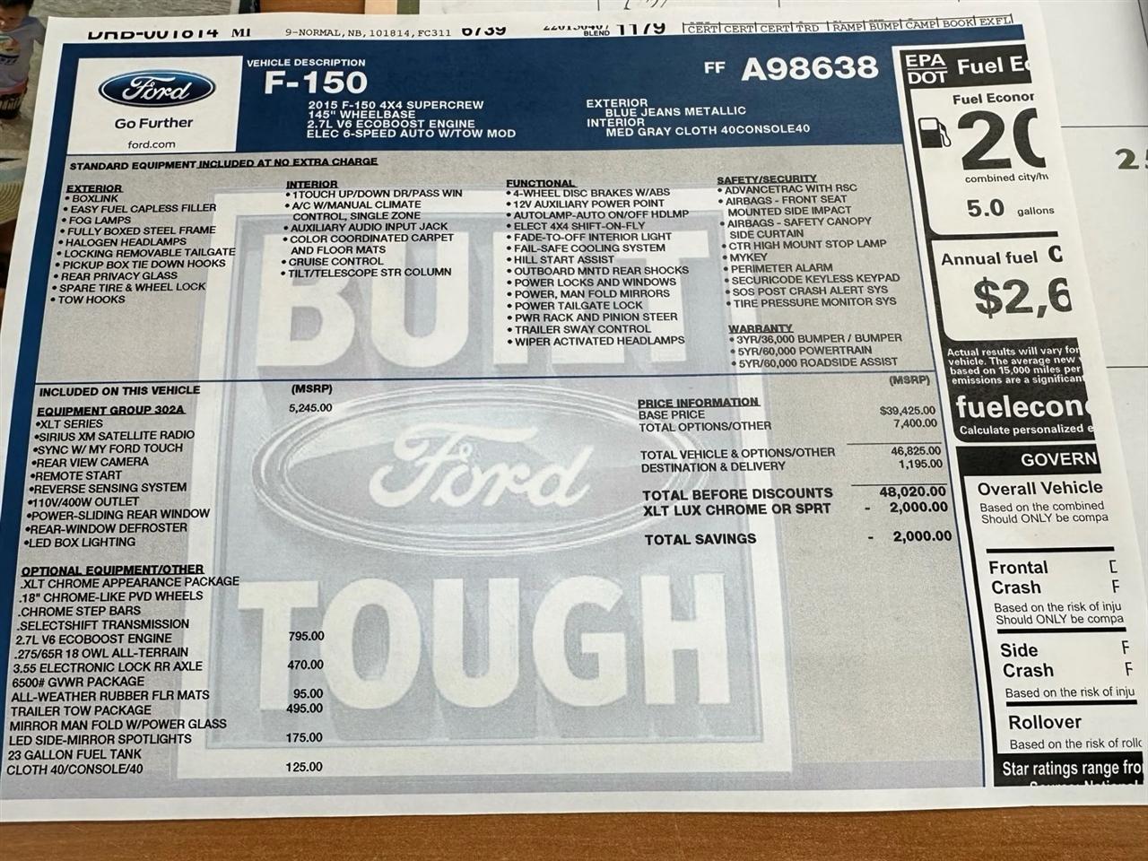 Plus, rest assured knowing that a Carfax report is available for this vehicle, so you can hit the road with confidence. Don't miss out on the opportunity to make this Blue 2015 Ford F-150 your new ride – schedule a test drive today and start your next journey!